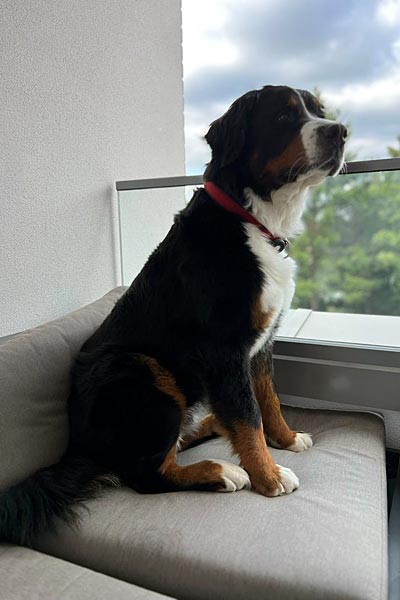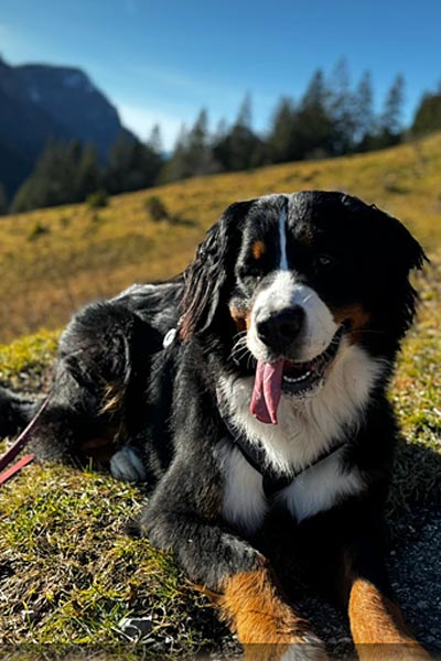 Kaya im Urlaub in den Bergen und von Schnee keine Spur
