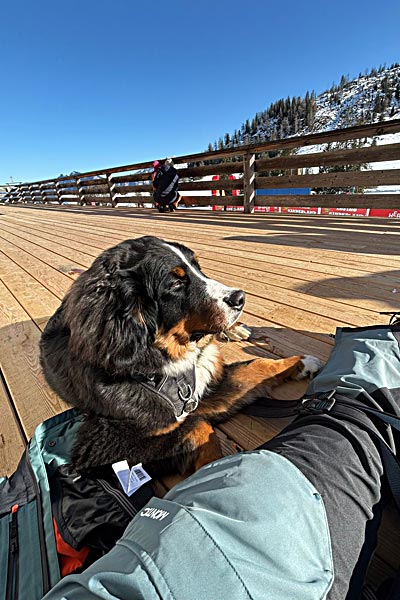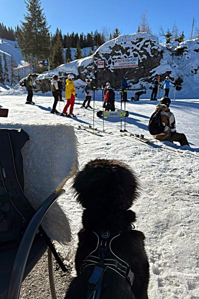 Skye schaut den Skifahrern interessiert zu