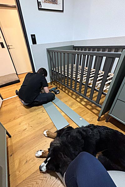 ah, Herrchen baut ein Bett ... wahrscheinlich