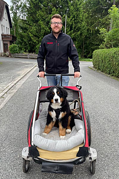 längere Strecken genießt der Oskar im Hundemobil